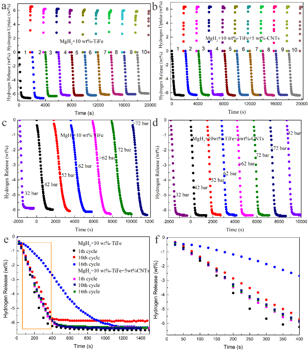 MgH2/TiFe/CNTs復(fù)合材料循環(huán)性能曲線