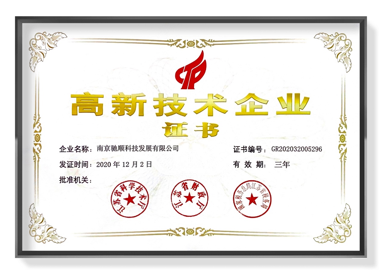Recently, our company received a high-tech enterprise certificate jointly issued by the Jiangsu Provincial Department of Science and Technology, the Jiangsu Provincial Department of Finance, and the Jiangsu Provincial Taxation Bureau of the State Administration of Taxation, marking our successful passing of the first batch of "high-tech enterprises" recognition in 2020.