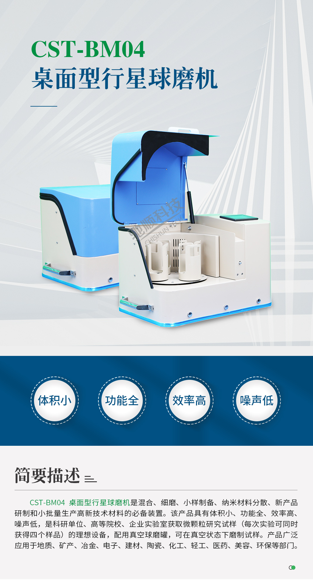 簡要描述:CST-BM04行星式球磨機是混合、細磨、小樣制備、納米材料分散、新產品研制和小批量生產高新技術材料的必備裝置。該產品具有體積小、功能全、效率高、噪聲低,是科研單位、高等院校、企業(yè)實驗室獲取微顆粒研究試樣(每次實驗可同時獲得四個樣品)的理想設備,配用真空球磨罐,可在真空狀態(tài)下磨制試樣。