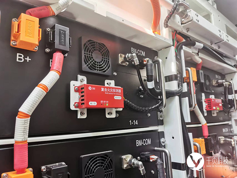 儲能艙整個柜體尺寸為12192mm*2438mm*2896mm,每個電池艙內(nèi)對側(cè)布置共6個電池簇,每個電池簇內(nèi)由20個電池PACK組成。電池艙內(nèi)每個電池簇作為一個防火子單元,在電池艙內(nèi)獨立設(shè)置一套區(qū)域報警系統(tǒng)。該探測系統(tǒng)包括:儲能電站用火災報警控制器、復合探測器(至少探測五種信號)、放氣指示燈、聲光報警器、手動火災報警按鈕、消防二總線、穿線管等組成。